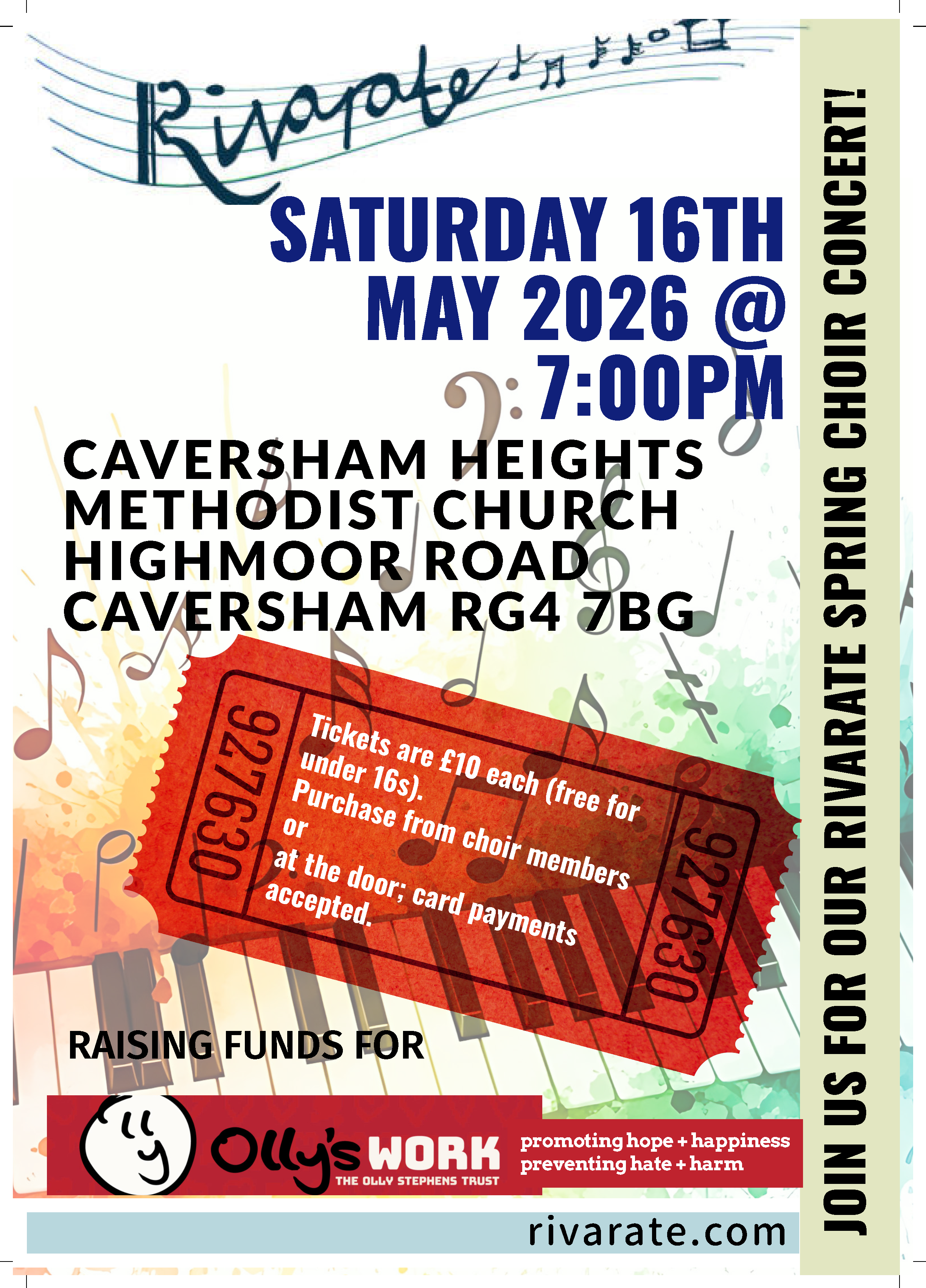 Rivarate sings a wide variety of repertoire, musicals, classical, rock and pop, folk, world or commissions. Whether it’s Mozart or Mercury, Palestrina or Porter, Jenkins or Joel, then there will be something for you to enjoy.